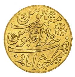 INDIA, Bengal Presidency, EIC gold mohur (1793) Murshidabad type (KM.103.1)(12.39g). Two rim marks, slightest filing to test, slight crinkling, otherwise nearly extremely fine.