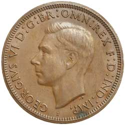 GEORGE VI, 1942I. Finger mark on obverse, otherwise red uncirculated.