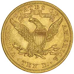 USA, TEN DOLLARS OR EAGLE, 1893, Liberty head. Good extremely fine.