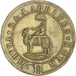 GIBRALTAR, R.& J. Abrines, advertising check in brass (29mm) (ex Pridmore Sale lot 554 and ...