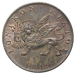 IONIAN ISLANDS, George III, copper obol, 1819 (Pridmore 19; KM.32). Grey brown patina with traces of mint red, nearly uncirculated and rare thus.