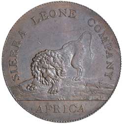 WEST AFRICA, Sierra Leone, bronzed copper one penny piece, 1791, plain edge (32mm) (Vice FT8; KM.2). Extremely fine or better.