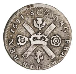 SCOTLAND, Charles II, (1649-1685), sixteenth dollar, 1681 (S.5624). Good fine.