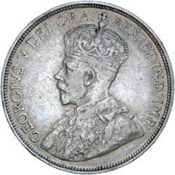 CYPRUS, George V, forty five piastres, 1928 (KM.19). Lightly toned obverse, nearly extremely fine/extremely fine. ...
