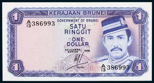 BRUNEI, Government of Brunei, Sultan Hassanal Bolkiah I, satu ringgit (one dollar) 1976, 1978; A/13 386993, A/17 185955; (P6a). Uncirculated. (2)