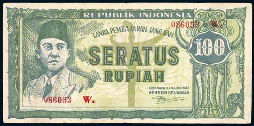 INDONESIA, Republic, one hundred rupiah, 1st January, 1947 086053 Wc (P.24a). Creases and folds, very fine.