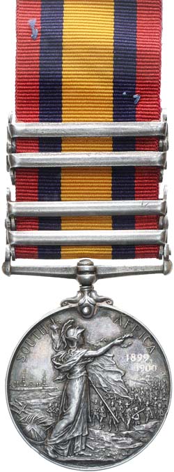 QUEEN'S SOUTH AFRICA MEDAL 1899, (type 2 reverse with clear ghost dates), - four clasps ...