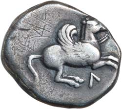 ACARNANIA, Leucas (Colony of Corinth), (420-350 B.C.), silver stater, (8.51 g), obv. Pegasos with pointed ...