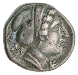 CORINTHIA, Corinth, (300-243 B.C.), silver drachm, (2.51 g), obv. Pegasos flying to left, [Q] below, rev. head of Aphrodite wearing ear-ring and necklace to right, with hair in sakkos, **APL*F monogram to left, star in front, (S.2643, SNG Cop. 138, BMC 419-420). Toned, nearly very fine and scarce.