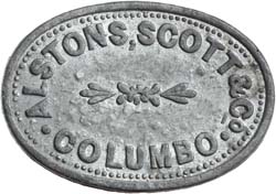 CEYLON, estate token in lead, uniface (1853-4), Alstons, Scott & Co. Columbo (Pridmore 2); A.A., ...