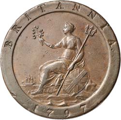 GREAT BRITAIN, George III, copper 'cartwheel' twopences, 1797 (S.3776). Fair; attempted piercing, otherwise very good; ...