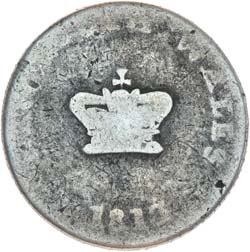 NEW SOUTH WALES, fifteen pence or dump, 1813 (Mira dies A/1). Traces of reverse of ...