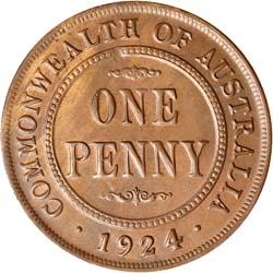 GEORGE V, 1924 London die. Peripheral die breaks, die clash above scroll on inner circle, attractive glossy red brown uncirculated.