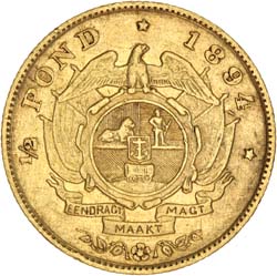 SOUTH AFRICA, ZAR, Paul Kruger, half pond, 1894 (KM.9.2). Nearly very fine.