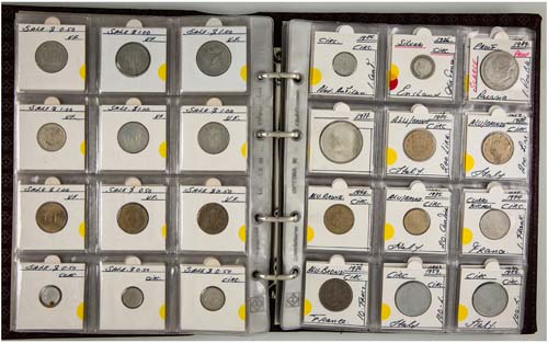 WORLD COINS, an assortment of mostly base metal issues from a variety of nations, includes ...