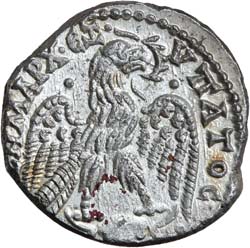 SYRIA, Seleucis and Pieria, Seleuceia Pieria, Macrinus (A.D. 217-218), silver tetradrachm, (10.35 g), obv. laureate bust draped and cuirassed of Macrinus to right, around [AYT] K M **OP*CE MAKPINOC C[EB], rev. eagle standing facing, head to right, standing on thunderbolt, around **[D]HMARC EX UP*ATOC, (S.2955, Bellinger 78, Prieur 1189). Struck slightly off centre on a tight flan, extremely fine with mint bloom scarce.