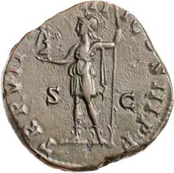 COMMODUS, (A.D. 177-192), AE sestertius, Rome mint, issued A.D. 181-182, (21.38 g), obv. laureate head of Commodus to right, around M ANTONINVS [CO]MMODVS AVG, rev. around TR P VII IMP IIII COS III P P, S C across field, Roma helmeted in military dress, standing facing, head left, holding Victory and spear, (S.-, RIC 324410, C.829, BMC 477). Brown patina, rough on surface of obverse, otherwise good very fine and rare.