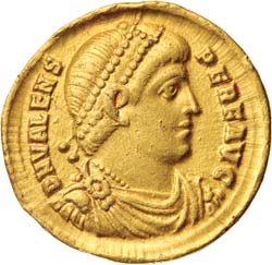 VALENS, (A.D. 364-378), gold solidus, Antioch mint, issued 366, 6th Officina, (4.39 g), obv. pearl ...
