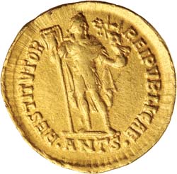 ARCADIUS, (A.D. 383-408), gold solidus, Sirmium mint, issued A.D. 393-395, 4th officina, (4.40 g), obv. ...