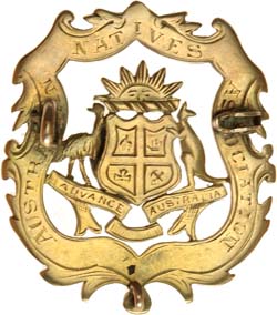 AUSTRALIAN NATIVES ASSOCIATION, badge in voided gold (15ct; 5.70g; 24x28mm), no maker, pin-back but pin ...