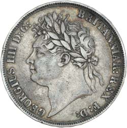 GEORGE IV, crown, 1821 (S.3805); halfcrowns 1823 (S.3808), 1829 (S.3809), shilling 1826 (S.3812), fourpence and ...
