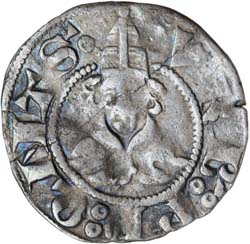 ITALY, Papale (Stato pontificio Avignon), Urbanus V (Guillaume de Grimoard), (1362-1370), silver bolognino 18mm, (1.06 g), Rome mint, obv. ? VRB : P P : QNTS ? (annulet and double annulet stops throughout), bust facing, wearing tiara and mantum, rev. + ? IN ROM ?, pelleted cross in saltire, with V R B n in angles, (CNI XV 8; Muntoni 3; Berman 198). Nearly very fine VF, toned, scarce.