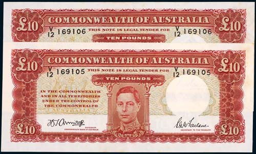 TEN POUNDS, Armitage/McFarlane (1943), V/12 169105/6 (R.59), consecutive pair. Nearly uncirculated. (2)