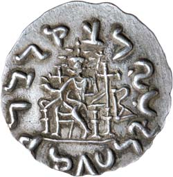 BAKTRIA, Indo-Greek Kingdom, Hermaios, (c.105-90 B.C.), silver drachm, 16mm, (2.44 g), obv. Diademed and draped bust right, around **BASILEWS SOTHROS ERMAIOU*, rev. Zeus Mithra seated to left holding sceptre, making a benediction gesture with his right hand, monogram in right field, (S.7740, Bop. Series 2A, SNG ANS 1332-3, HGC 12, 302 [S]). Attractive dark patination, good very fine, scarce.