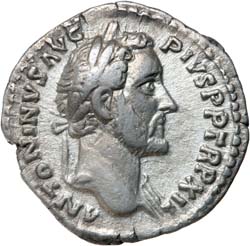 ANTONINUS PIUS (A.D. 138 - 161), silver denarius, Rome mint (3.48 g), obv. bare head ...