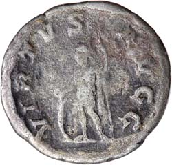 GORDIAN II, Africanus, (A.D. 238), silver denarius, Rome mint, issued A.D. March - April 38, (2.74 g), obv. laureate, draped and cuirassed bust of Gordian II to right, IMP M ANT GORDIANVS AFR AVG around, rev. Virtus standing to left, with hand on shield, leaning left on spear, around VIRTVS AVGG, (S.8467, RIC 3, RSC 14, BMC 30). Very good - nearly fine, very rare.