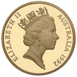 ELIZABETH II, proof five dollars, 1992, even matte surface over both flag and map (McDonald ...