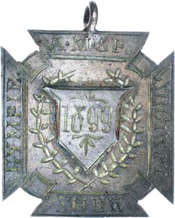 GYMPIE A.M.&P. (Agricultural, Mining & Pastoral) Society Show, 1899, prize fob handcrafted in silver (29x31mm), ...