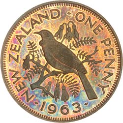 ELIZABETH II, Royal Mint London, proof penny, 1963. Blue brown and red, FDC and extremely rare.