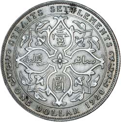STRAITS SETTLEMENTS, George V, one dollar, 1920 (restrike) (KM.33). Extremely fine.