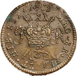IRELAND, James II, Civil War Coinage 1689-91, 'Gun Money' coinage 1689-90, shilling large size, Mar1690 ...