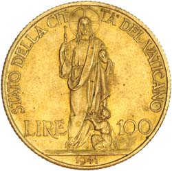 ITALY, Vatican, Pope Pius XII, specimen set of nine including gold 100 lire, 1941 (KM.MS25). ...