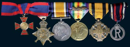 GROUP OF SIX TO AUSTRALIAN NURSE: Royal Red Cross First Class (GRI) with ribbon bow; 1914-15 Star; British War Medal 1914-18; Victory Medal 1914-19 with MID; Greek Medal for Military Merit 4th Class; Queen Alexandra's Imperial Military Nursing Service Reserve Cape Medal. First and fifth medals unnamed as issued, Sister L.E.Barrow. Q.A.I.M.N.S.R on second medal, Matron L.E.Barrow on third and fourth medals, L.E.Barrow 20th May. 1915 on last medal. The second to fourth medals impressed, the last medal engraved. The first and last medals loose, the last with pin-back ribbon suspender, the remaining four medals swing mounted, very fine - extremely fine.