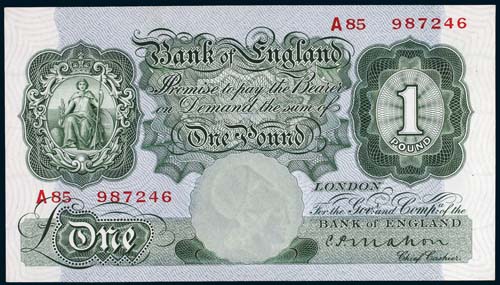 GREAT BRITAIN, Bank of England, one pound, C.P. Mahon (1928-29) A85 987246 (P.363a; B212). Virtually uncirculated.