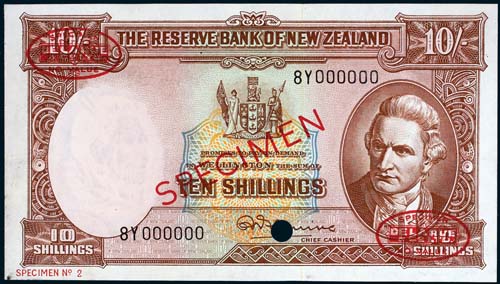 NEW ZEALAND, Reserve Bank of New Zealand, R.N. Fleming 1956-65, ten shillings (P.158d). Good extremely ...