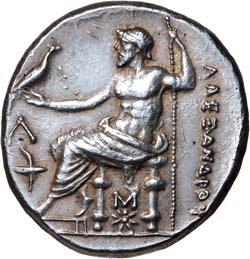 MACEDON, Kingdom of, Alexander III, (336-323 B.C.), silver tetradrachm, (16.95 g), Kassander as regent, Amphipolis Mint, issued c.307-297 B.C., obv. head of Herakles to right wearing lion skin with dotted border, rev. Zeus seated on throne to left, eagle in outstretched hand, **L* over torch on left, M above star below throne, to right **ALEXANDROU*, (cf.S.6713, Price 481, Ehrhardt 42). Lightly toned, well struck, good very fine - nearly extremely fine.