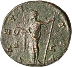 FAUSTINA JUNIOR, wife of Marcus Aurelius, (died A.D.175), AE as, Rome mint, (11.65 g), obv. draped bust to right of Faustina with hair bound down behind head, around FAVSTINA AVGVSTA, rev. LAETI TIA around, Laetitia standing to left, holding wreath and sceptre, S C across, (S.5300, RIC 1657, C.152). Attractive even brown patination, extremely fine and very scarce.