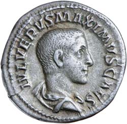 MAXIMINUS I, (A.D. 235-238), silver denarius, Rome mint, (3.24 g), obv. laureate bust draped and ...