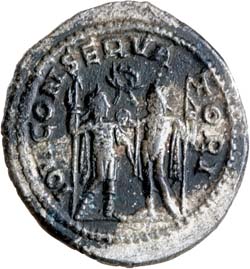 GALLIENUS, (A.D. 253-268), billon antoninianus, (5.35 g), uncertain Syrian mint, issued 258-260, obv. around IMP C P LIC GALLIENVS P F AVG, radiate and cuirassed bust right, rev. IOVI CONSERVATORI, Gallienus in military attire resting on spear receiving globe from Jupiter resting on sceptre, wreath above, (S.10242, RIC 440, RSC 378) (illustrated); Valerian I, (A.D. 253-260), silver antoninianus, Rome mint, (3.42 g), obv. radiate cuirassed bust right, around IMP VALERIANUS P AVG, rev. PAX AVGG around, Pax standing left holding branch and transverse sceptre, (cf.S.9954, RIC 245, RSC 147); another similar, (3.97 g), Antioch mint, obv. radiate bust right, around IMP C P LIC VALERIANUS AVG, rev. ROMAE AETERNAE around, Roma seated to left holding Victory and spear, (S.9970, RIC 120, RSC 192); another uncertain Syrian mint (3.37 g), similar obv., rev. VIRTVS AVGG around, Valerian and Gallienus facing each other, (S.9995, RIC 293, RSC 276). Mostly toned, good fine - good very fine. (4)