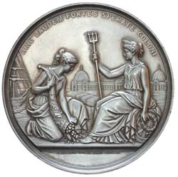 NEW SOUTH WALES PRIZE EXHIBITORS MEDAL, 1862 (London) in silver (76mm), by W.Kullrich, edge inscribed, 'John Campbell Esq. Services'. A few small marks on cheek, otherwise extremely fine.
