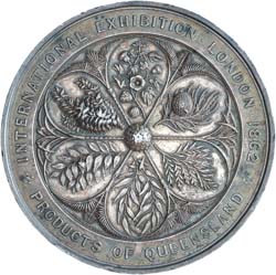 INTERNATIONAL EXHIBITION LONDON, Products of Queensland, 1862, in silver (64mm) (BHM2748), by J.S. & A.B. ...