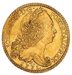 BRAZIL, Joseph I, gold 6,400 reis or half Johanna, 1771R (Rio) (KM.172.2). Nearly extremely fine. ...