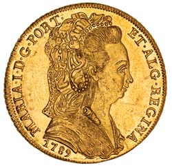 PORTUGAL, Mary I, gold 6,400 or half Johanna, 1789 (KM.299). Nearly uncirculated.