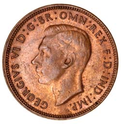 GEORGE VI, 1939 kangaroo reverse. Hints of red, brown nearly uncirculated.