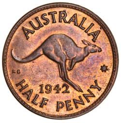 GEORGE VI, 1942. Red and brown uncirculated, scarce thus.