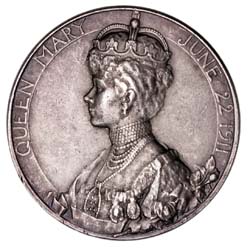 QUEEN VICTORIA, Diamond Jubilee, 1897, in silver (26mm) (BHM 3506; Eimer 1817); Edward VII Coronation, 1902, in silver (31mm) (BHM 3737; Eimer 1871) (2); George V Coronation, 1911, in silver (30mm) (BHM 4022; Eimer 1922) illustrated; George V & Mary, Peace Celebrations, Calcutta Schools, 1919, in bronze (31.5mm); George VI Coronation, 1937, in silver (35mm) (BHM 4328). Mostly extremely fine. (6)